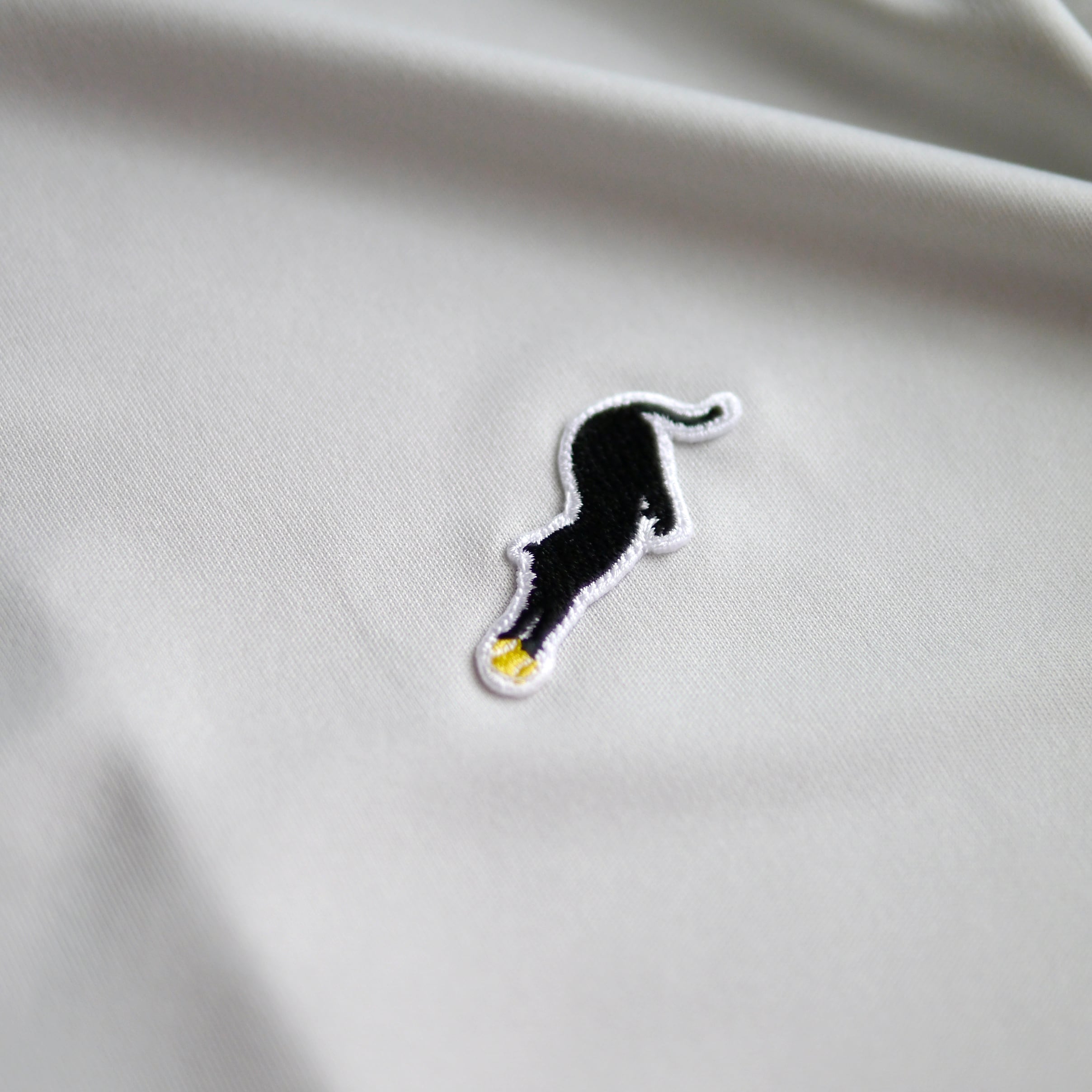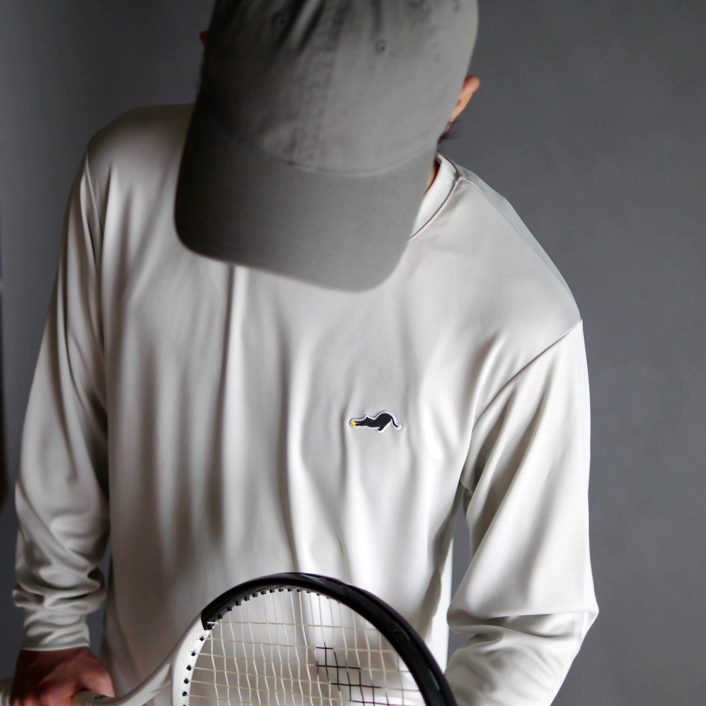 左胸のワンポイント刺繍は、テニスボールを掴んで伸びをする猫が愛らしくもスタイリッシュ。セットアップで全6色のハーフパンツもあるので、合計54種類の組み合わせの中から自分に合ったコーデを見つけよう!