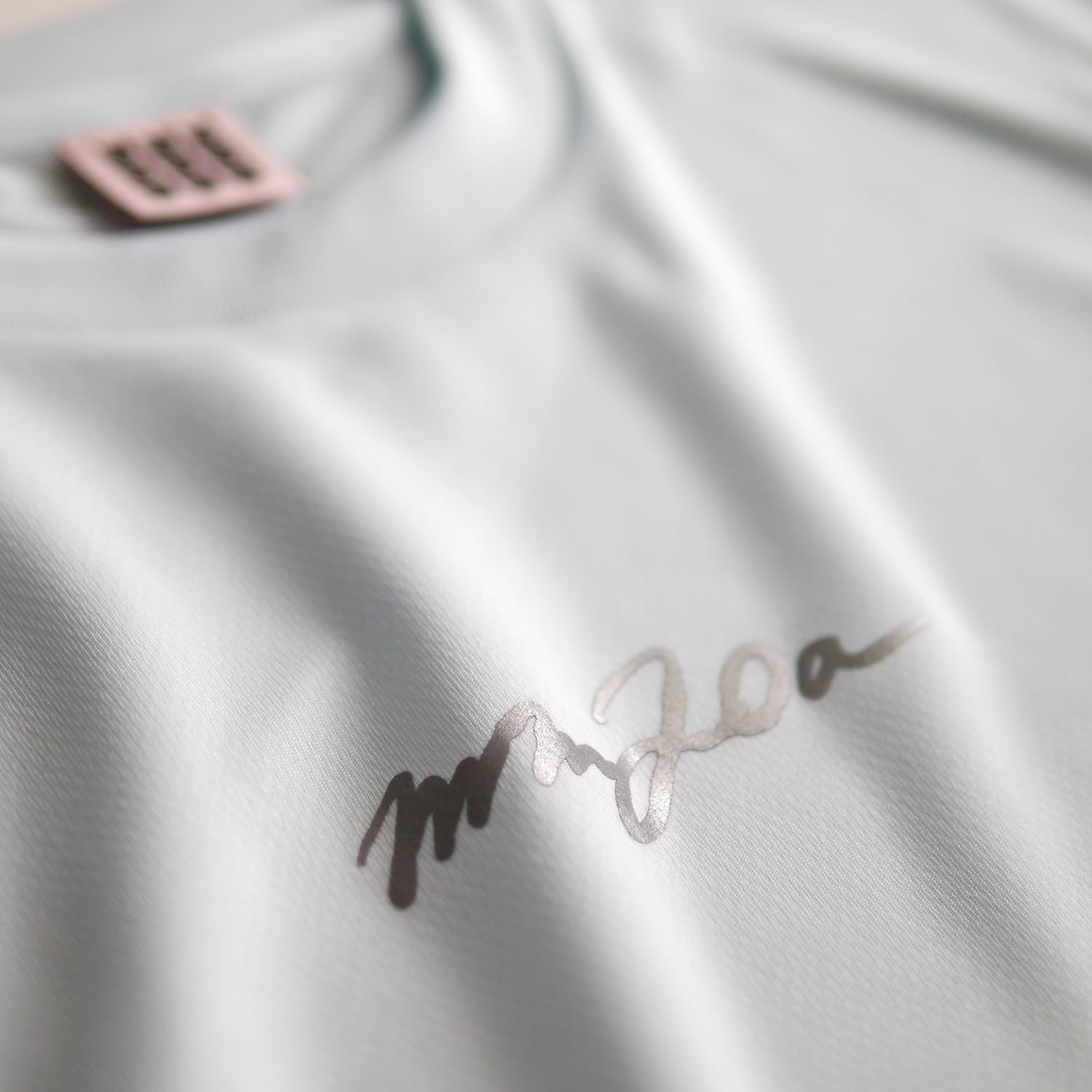 胸の「MM20a」のロゴは、撥水・防水・伸縮性に優れた強靭な転写シートを採用。薄膜光沢仕上げのシルバーカラーは、スタイリッシュでスポーティーな印象です。
