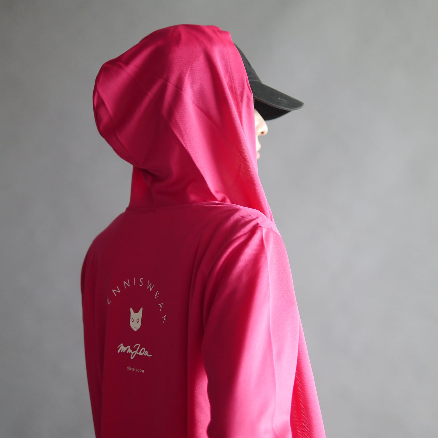 吸汗速乾性に優れたポリエステル100%のドライジップフーディ。紫外線保護指数UPF20(紫外線の影響度を1/20に低減)で若干の伸縮性もあるため野外でのトレーニングウェアとしても最適。両サイドにはテニスボールも入る大きめポケットが嬉しいポイント。