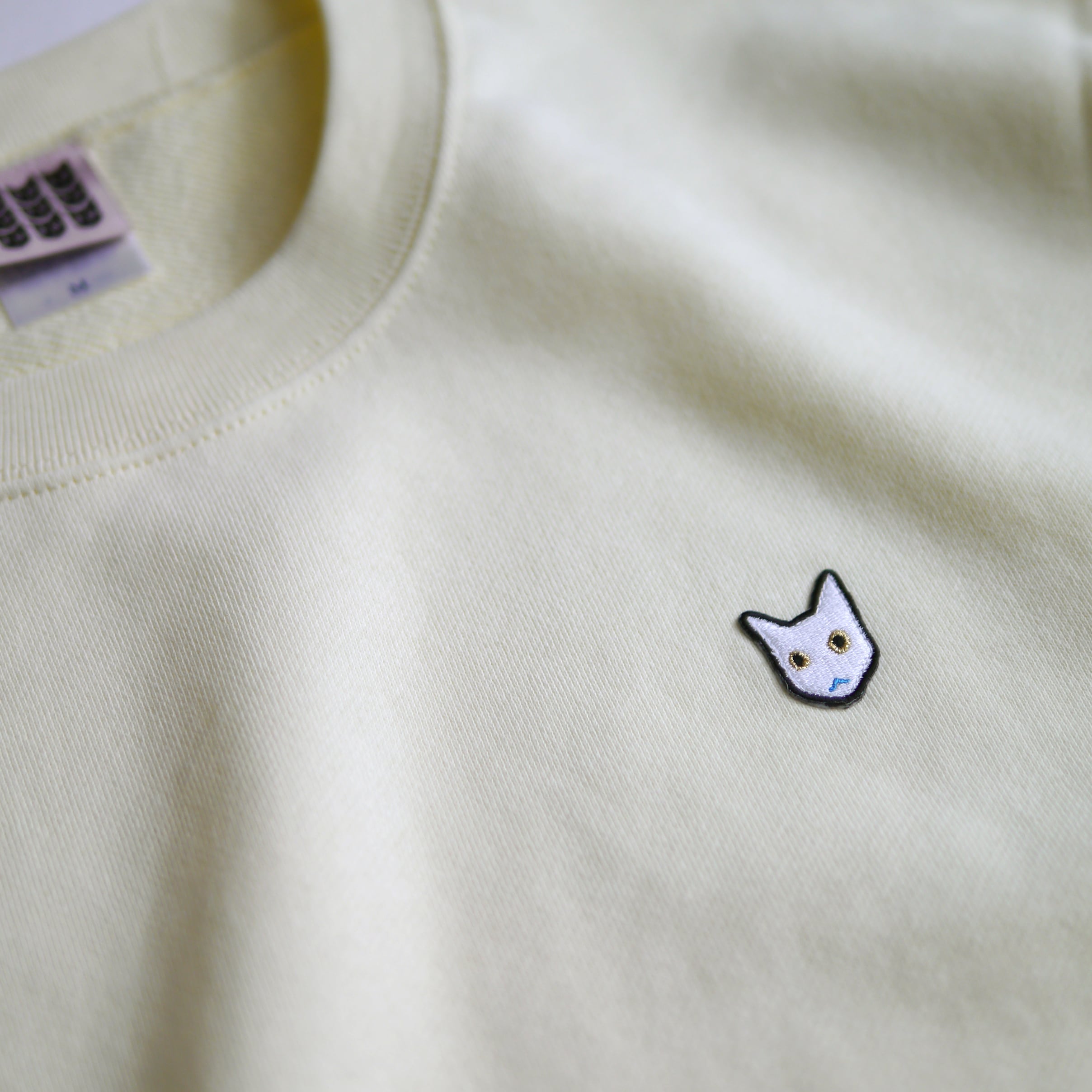 左胸には白猫のワンポイント刺繍。