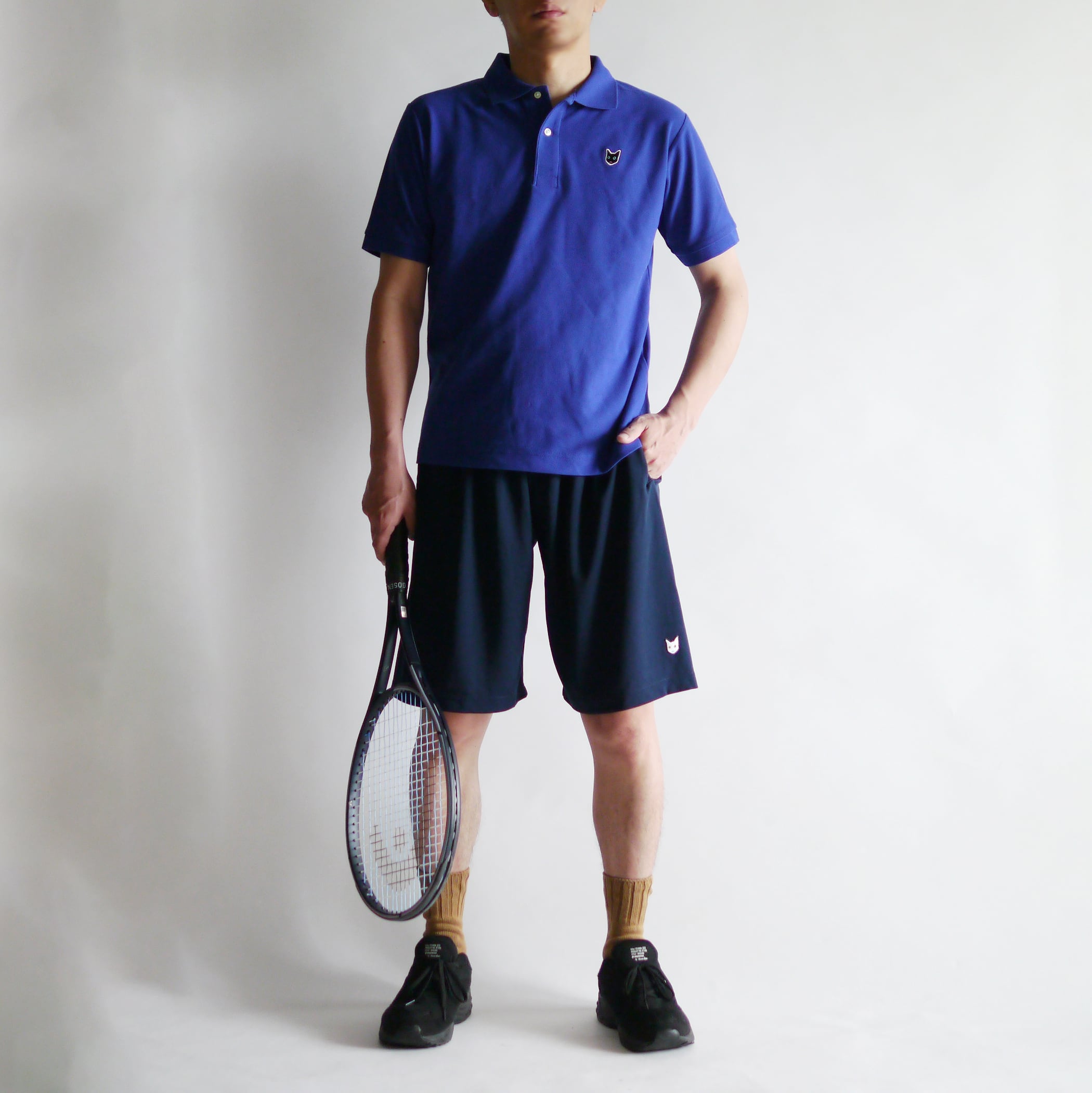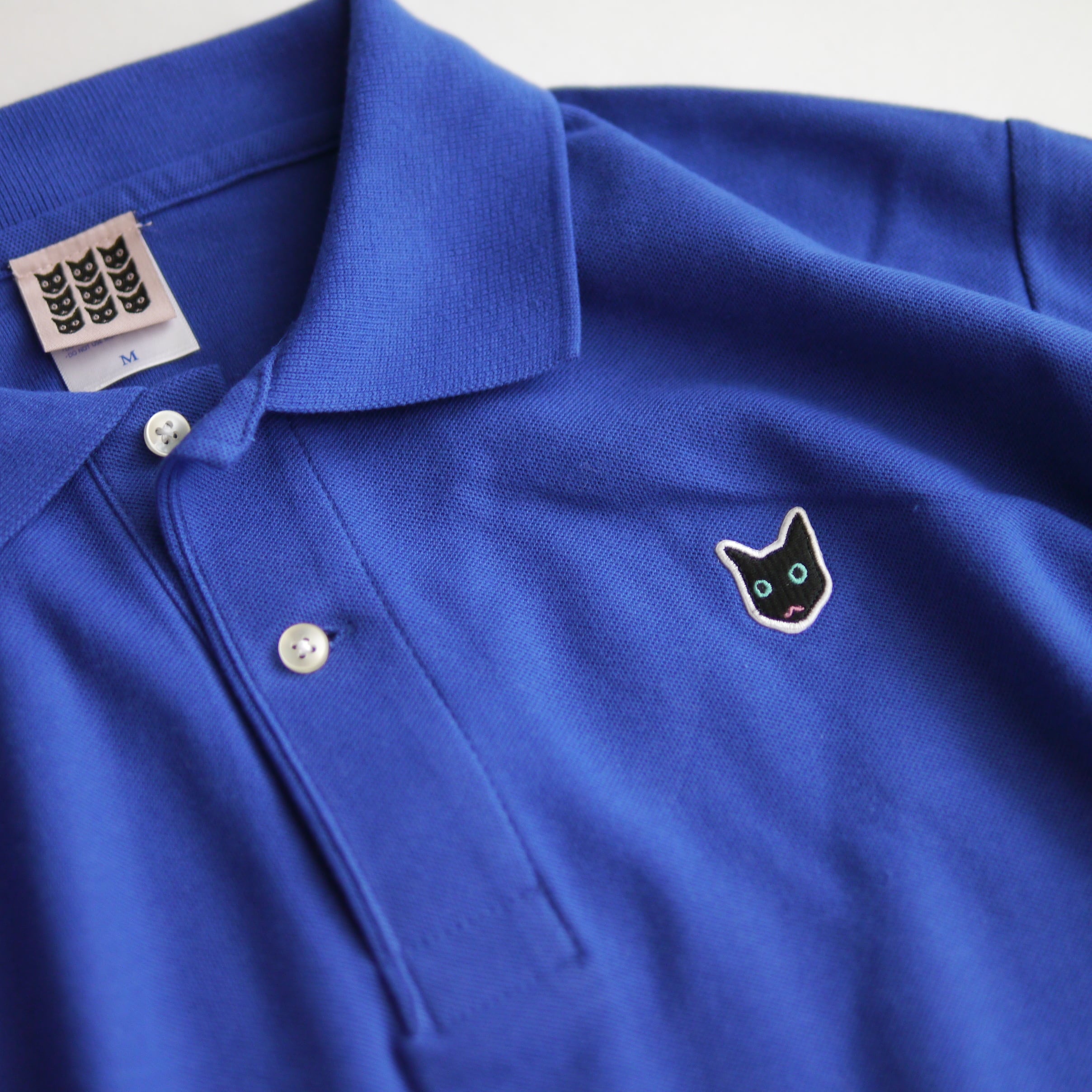 黒猫.ドライ鹿子ポロシャツ_コバルトブルー
